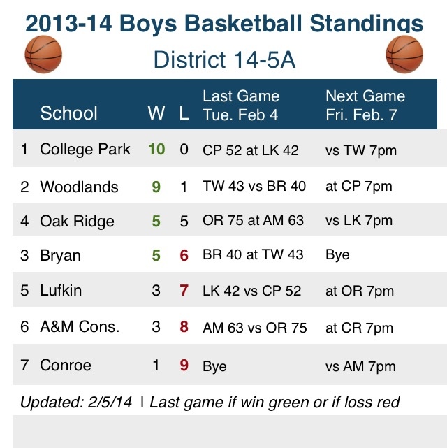 14-5A Boys Basketball Standings