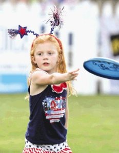 Jenna Born throws a frisbee during the Red, Hot and Blue Festival in The Woodlands Friday. To view or purchase this photo and others like it, visit HCNpics.com.