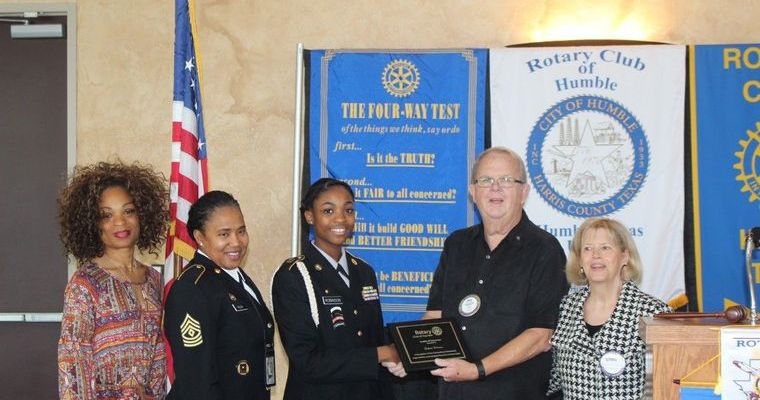 The Rotary Club of Humble presented Shakuri Robinson with the “Leader of Tomorrow” award at the regular luncheon meeting on Wednesday, Jan. 27.